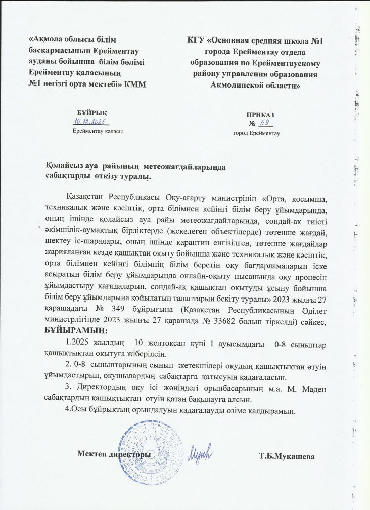 Қолайсыз ауа-райының метеожағдайларында сабақтарды өткізу